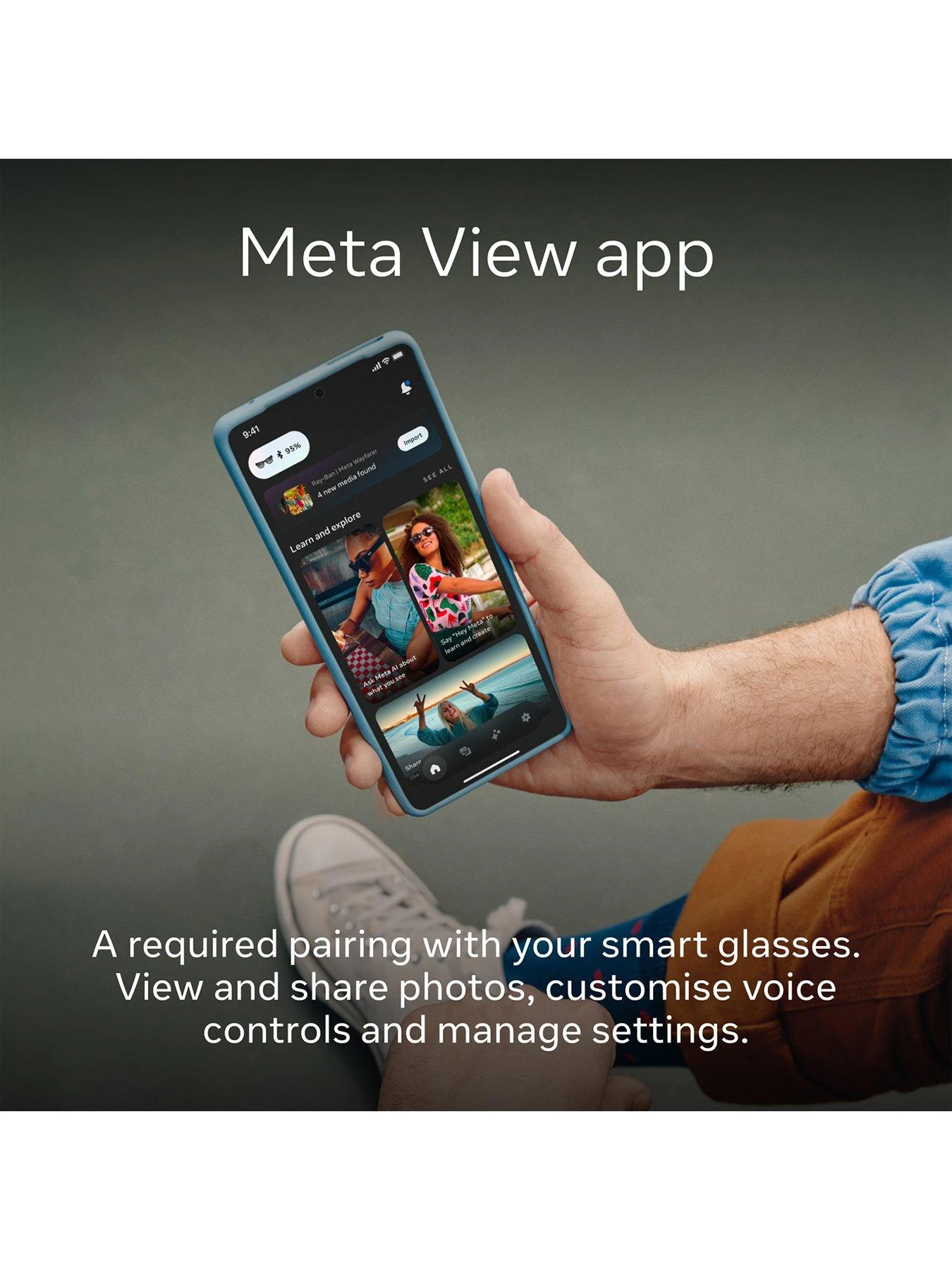 - Use the Meta View App to pair up to two glasses to your phone and manage them in one place. Add special effects to content and easily share with friends.