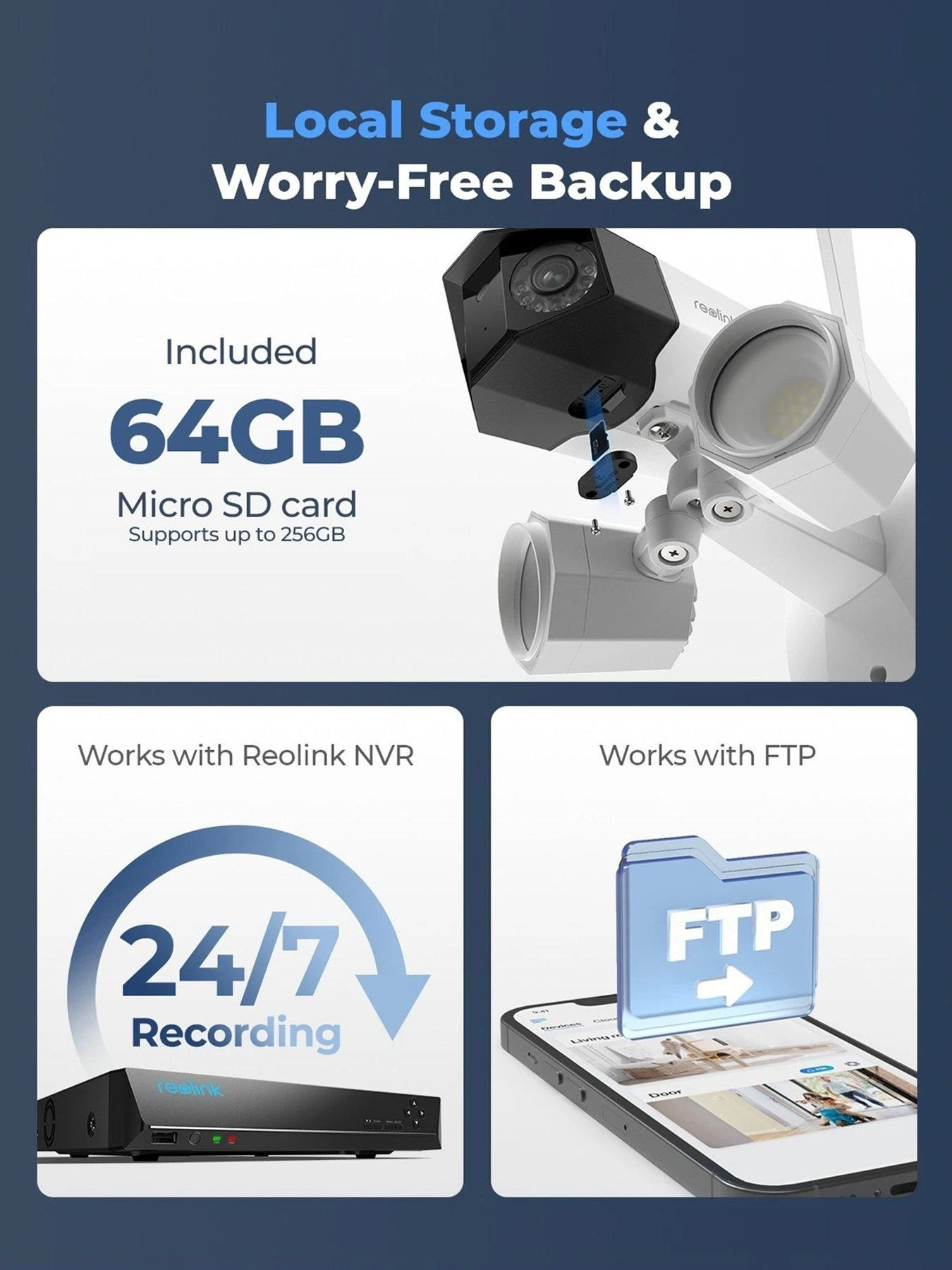 - Include 64GB Reolink SD Card — More secured local storage and a perfect solution without additional fee.