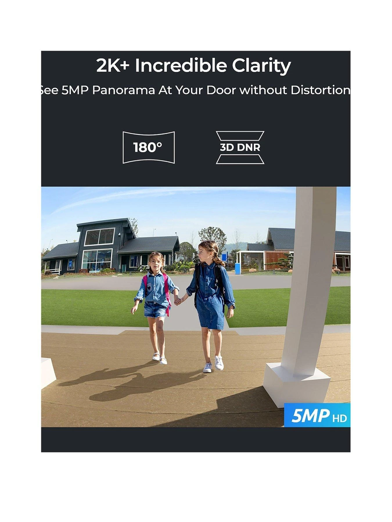 - 5MP Super HD & 180° Diagonal View—Incredible 5MP HD brings you sharp images.