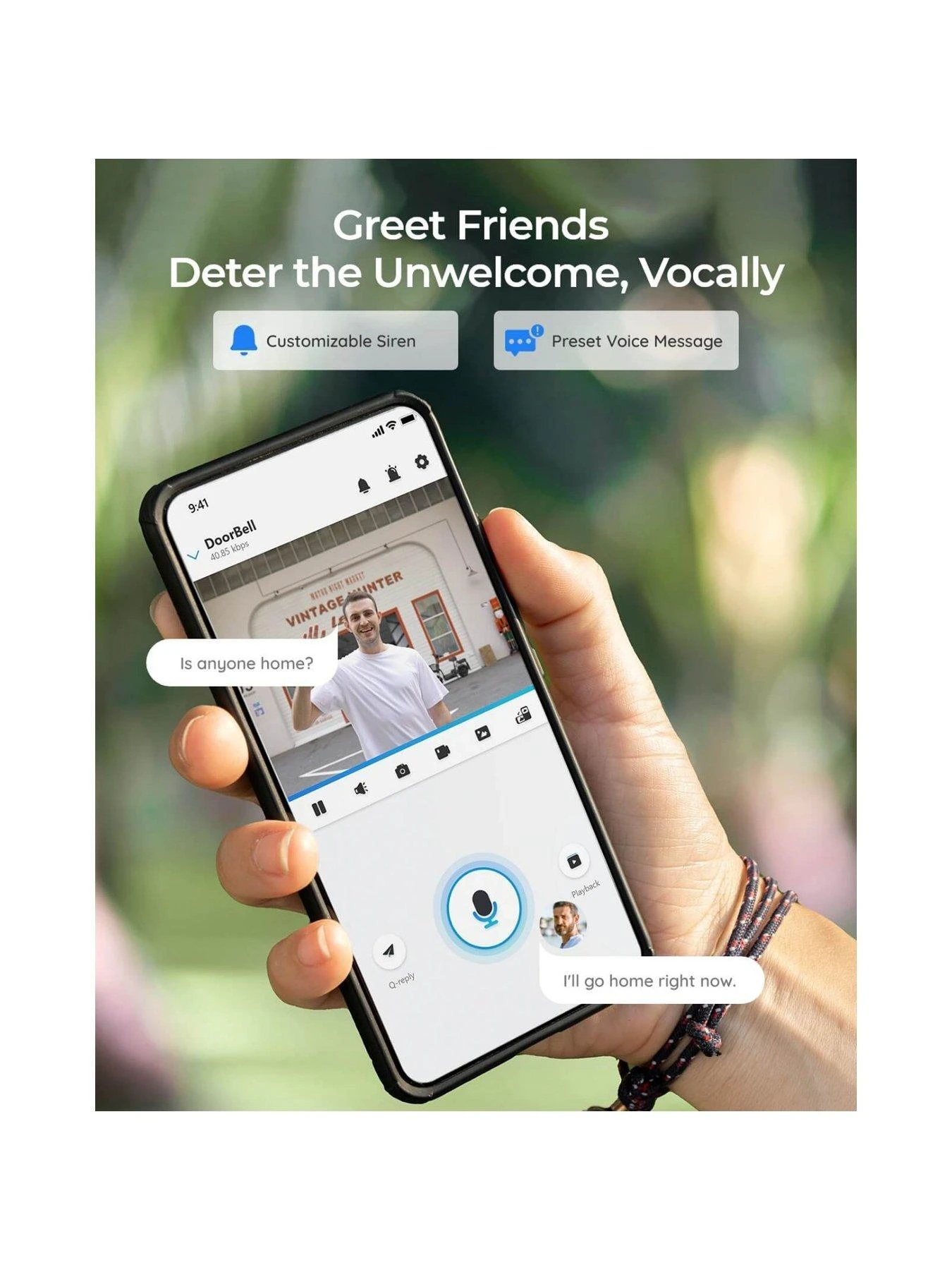 Preset your voice messages and have the doorbell speaks for you: “Leave the package outside”, “Leave my property now”, etc. You can also set automatic responses for times when you’re completely occupied.