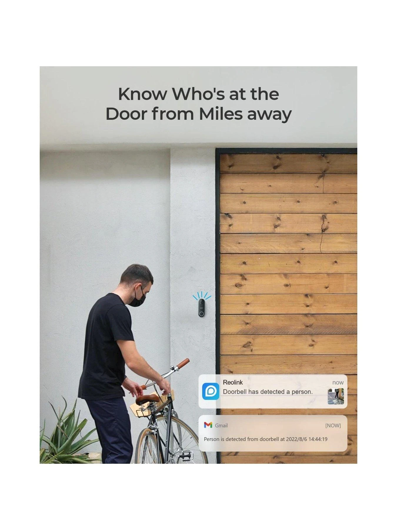 Reolink Video Doorbell has built-in mics and a speaker so you can greet a visitor, deter unwanted arrivals, or live talk with the visiting friends when you’re not at home.