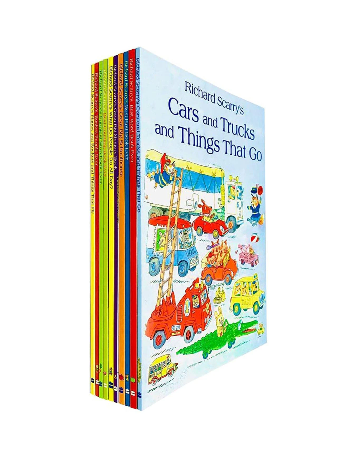 Richard Scarry’s books have been delighting children with a complete sketch of the busy town. Each zany illustration features plenty of friendly animal characters going to work. Titles in the Set include – – Great Big Mystery Book – Great Big Schoolhouse – Best Word Book Ever – What Do People Do All Day – Cars and Trucks and Things That Go – Funniest Storybook Ever – Planes and Rockets and Things That Fly – Busiest People Ever – Best First Book Ever – Best Counting Book