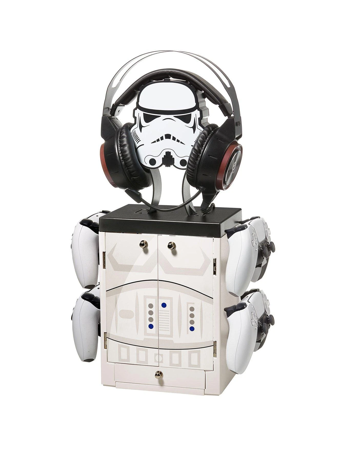 Star Wars fans love the Storm Trooper helmet design at the top and armour details on the doors, which open so you can store up to 10 of your Xbox, PS, Switch games, or Blu-ray films inside. There’s also a handy extra drawer compartment at the bottom for cables, batteries and more.