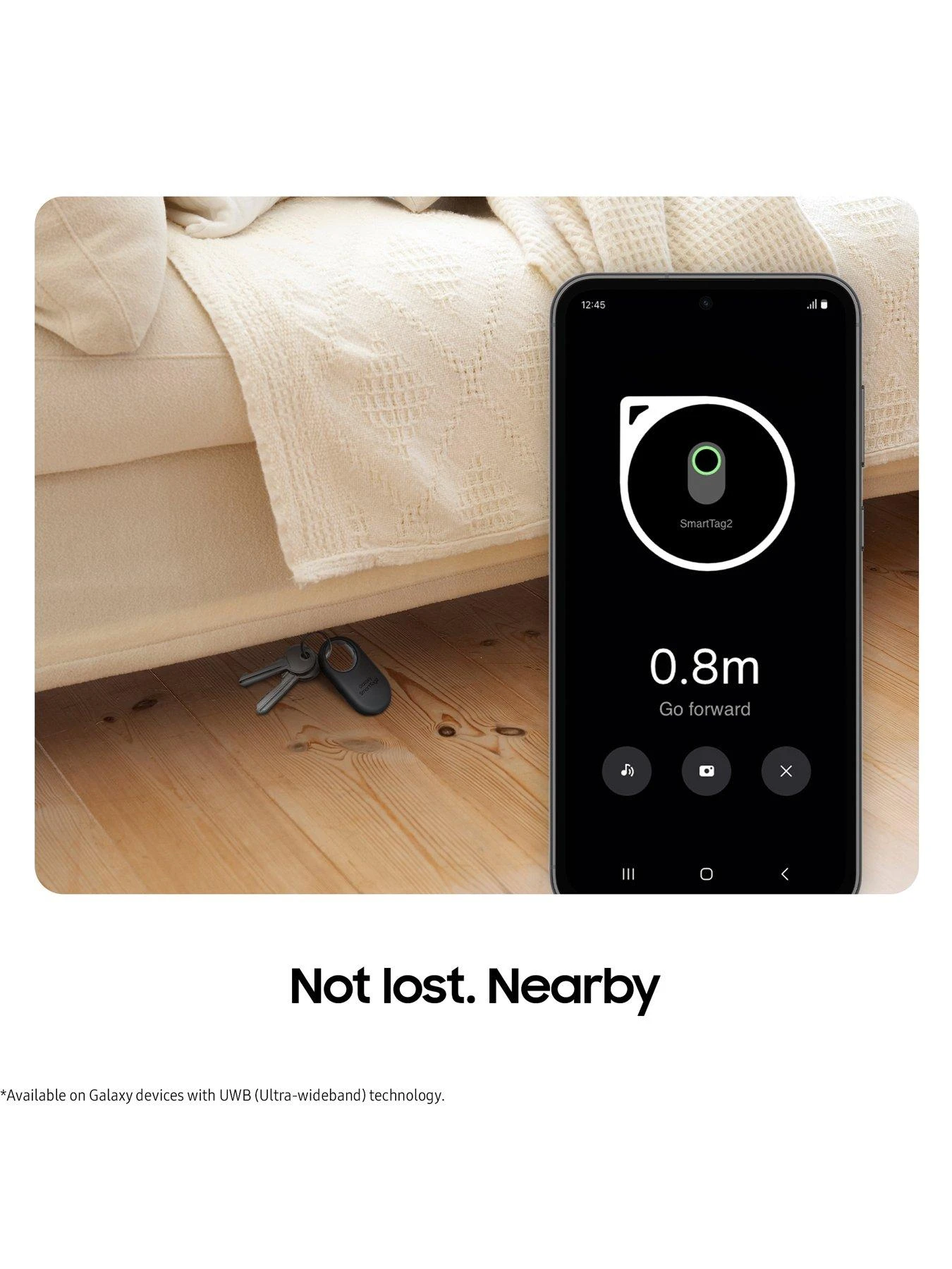 Peace of mind comes built in with Galaxy SmartTag. The slimmer design and larger loop allow you to attach it to a wider range of belongings, from keys to suitcases. If a tagged item does go astray, Compass View and AR Finder give precise directions to save you time when searching (1). The super long battery life lets you keep track of lost luggage for over a year, even if it gets rained on, thanks to IP67 water resistance (2). And with the new Lost Mode feature, whoever finds your item can tap the tag with their phone to see your information and reunite you with your precious possessions ASAP (3).
