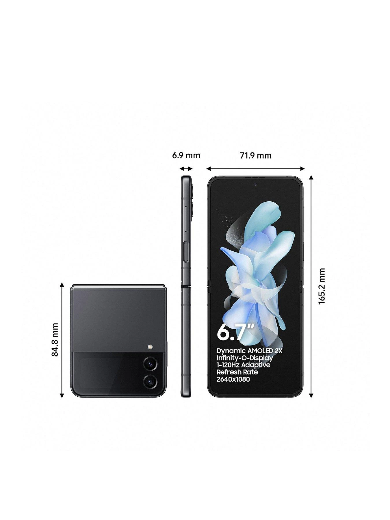 At full stretch, the 6.7 inch AMOLED display (1080×2640, 120Hz) brings all your entertainment to life. It works as a split screen too – so you Zoom while checking your emails or watch a video and scan Twitter at the same time. There’s a 1.83 inch exterior display that tells you the time, notifies of incoming messages and lets you skip tracks. It’s even got an IPX8 rating for protection against dust and water.