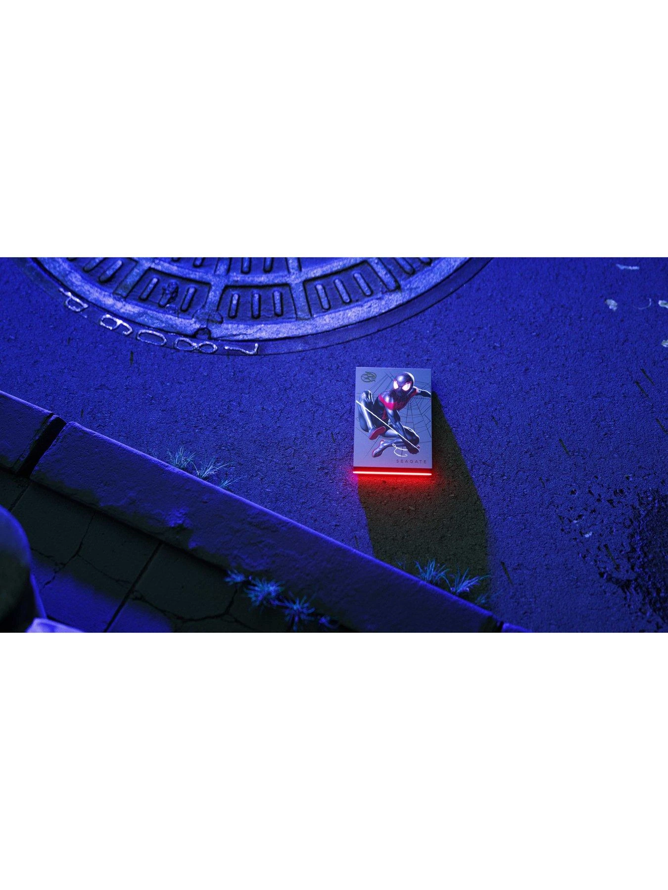 The stylish Seagate Marvel Miles Morales Special Edition FireCuda External 2TB Hard Drive can handle all your data.