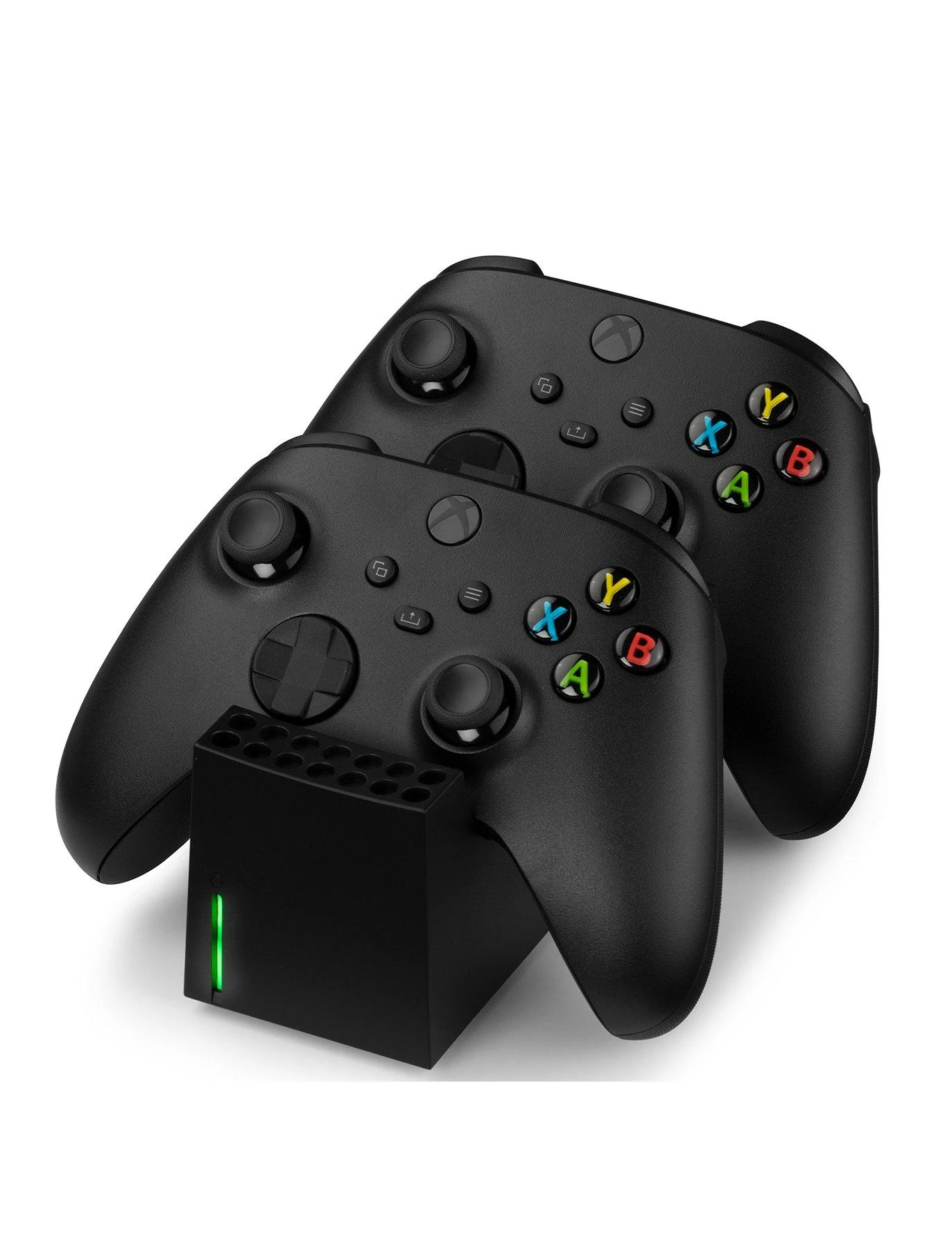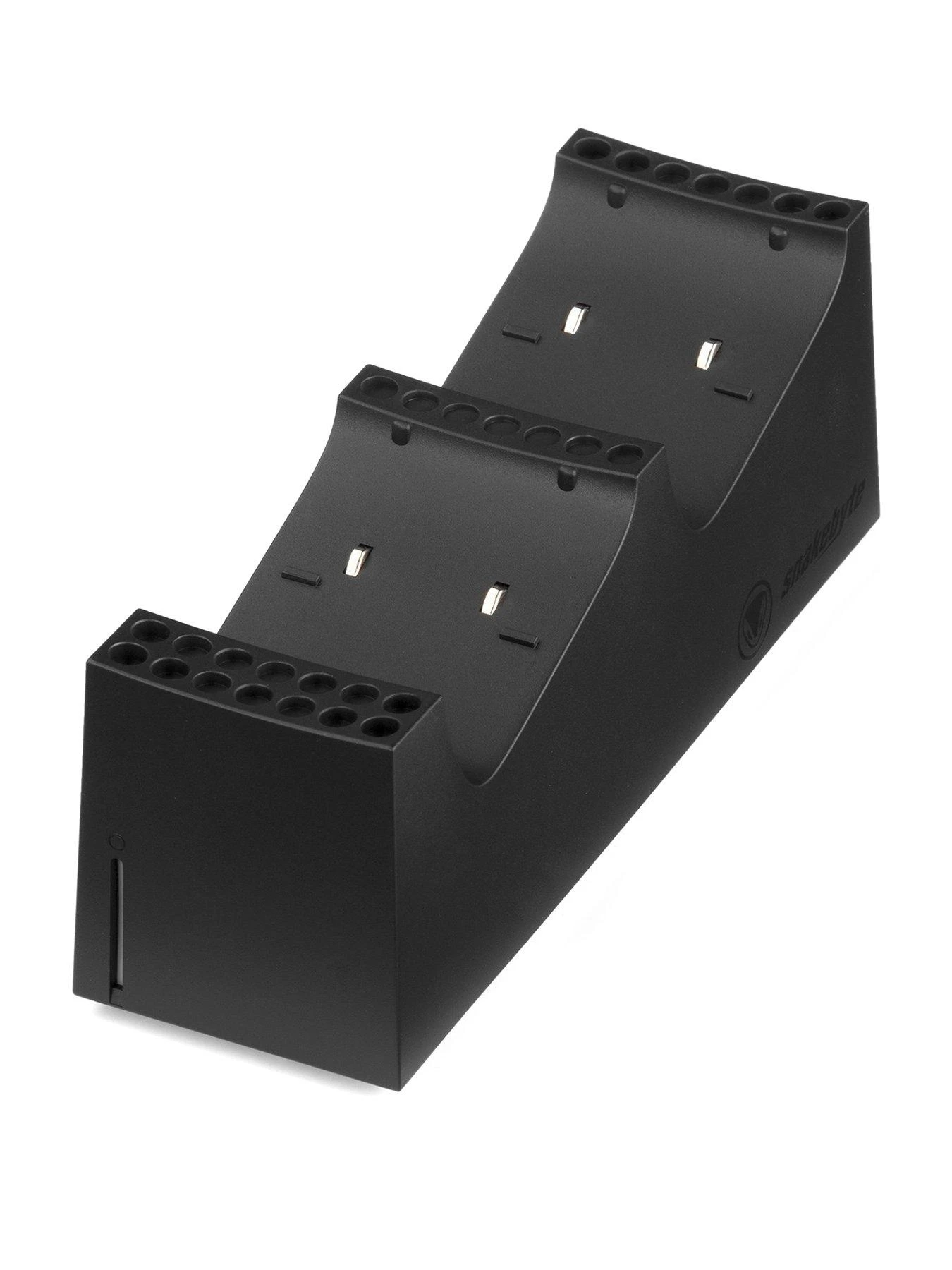 Charge up to two Xbox Series S/X controllers simultaneously. Simply insert the two supplied rechargeable 800 mAh batteries into the controller and place them on the charging contacts of the charging tray. An LED light indicator lets you know when charging is complete. The Snakebyte docking station is also designed to match the Xbox Series S/X console design and the controllers have a perfect fit.