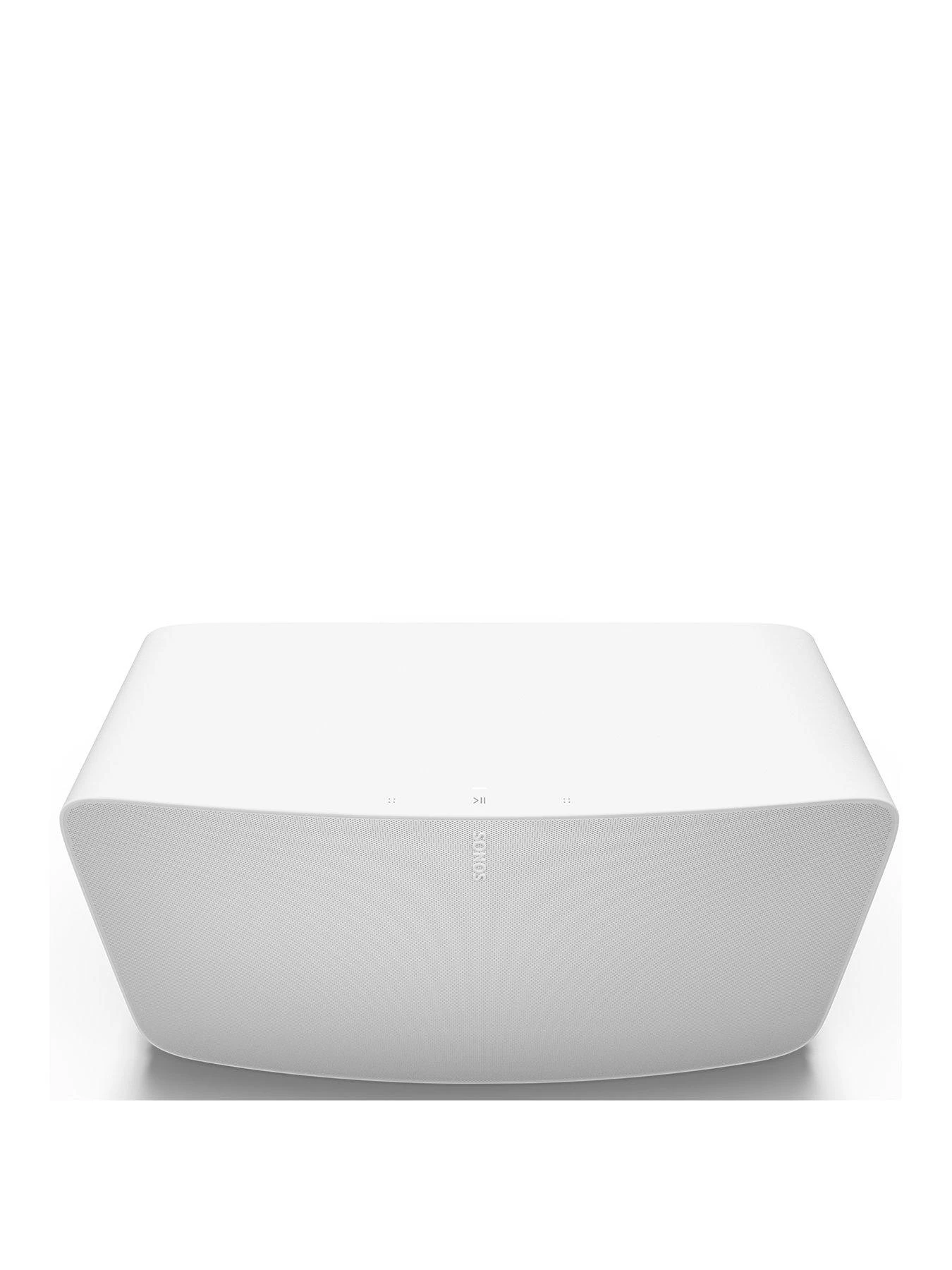 Experience bold sound that can fill any space. Sonos Five delivers the same great sound as the Play:5, with updated internals including increased memory, processing power, and a new wireless radio. 3 custom-designed woofers deliver rich bass while the sealed architecture eliminates reverb and echo.