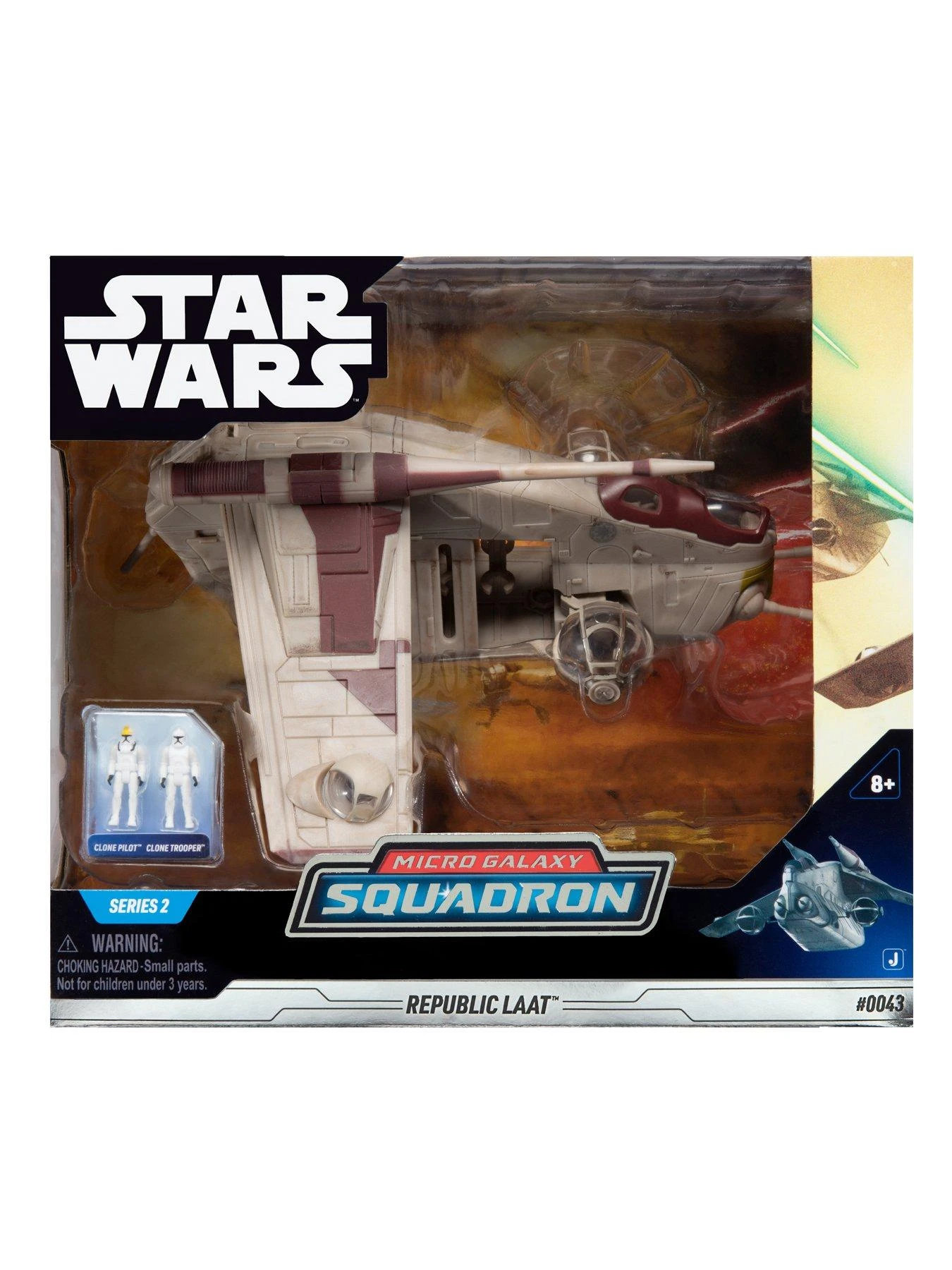 Vehicle also includes articulated 1-inch Clone Pilot and Clone Trooper micro figure accessories, compatible with any STAR WARS Micro Galaxy Squadron craft.