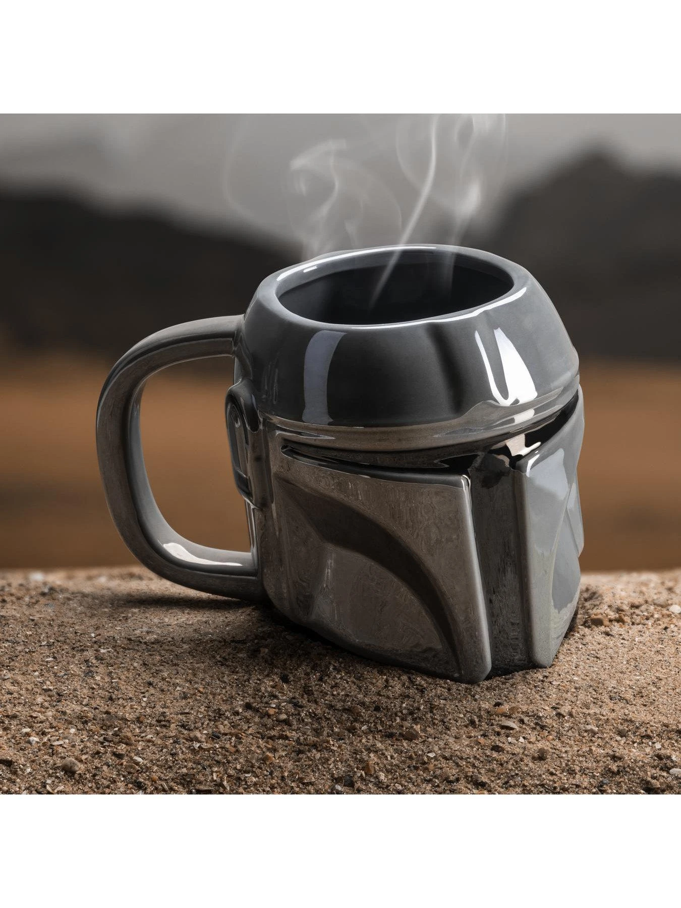 This 3D shaped mug has been expertly crafted in the shape of the helmet and distinctive T-shaped visor worn by the title character of the Star Wars Disney+ original television series The Mandalorian. Supplied in a printed gift box with a window front and perfect for any occasion this 3D shaped oversized mug makes a great present for any fan of The Mandalorian or the original Star Wars movie series.