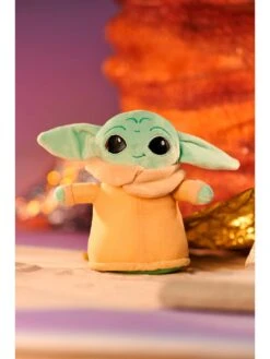 - Soft toy comes in classic robes as seen on the hit series ‘The Mandalorian.’
