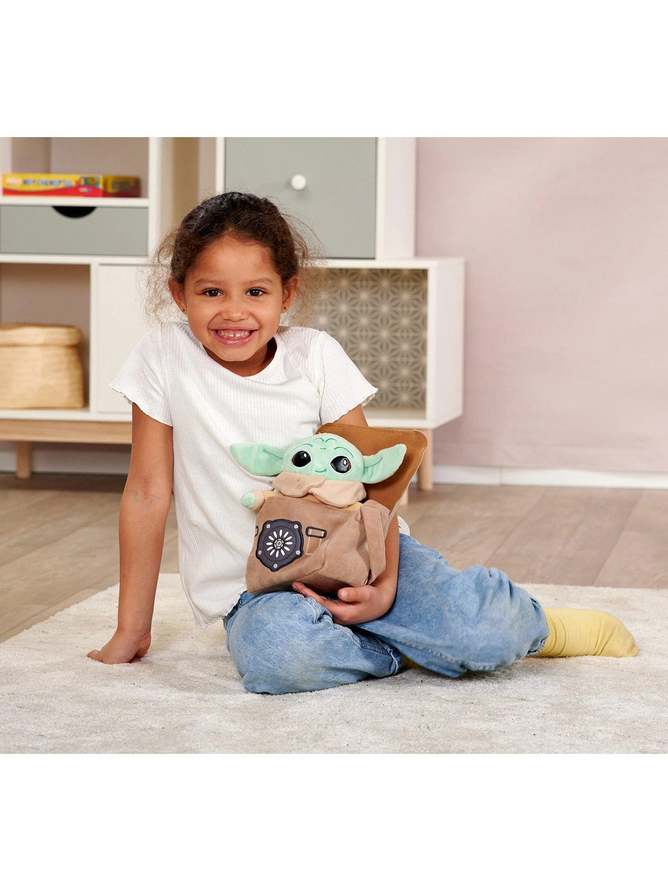 - Disney’s The Mandalorian: The Child soft toy in an authentic brown satchel bag