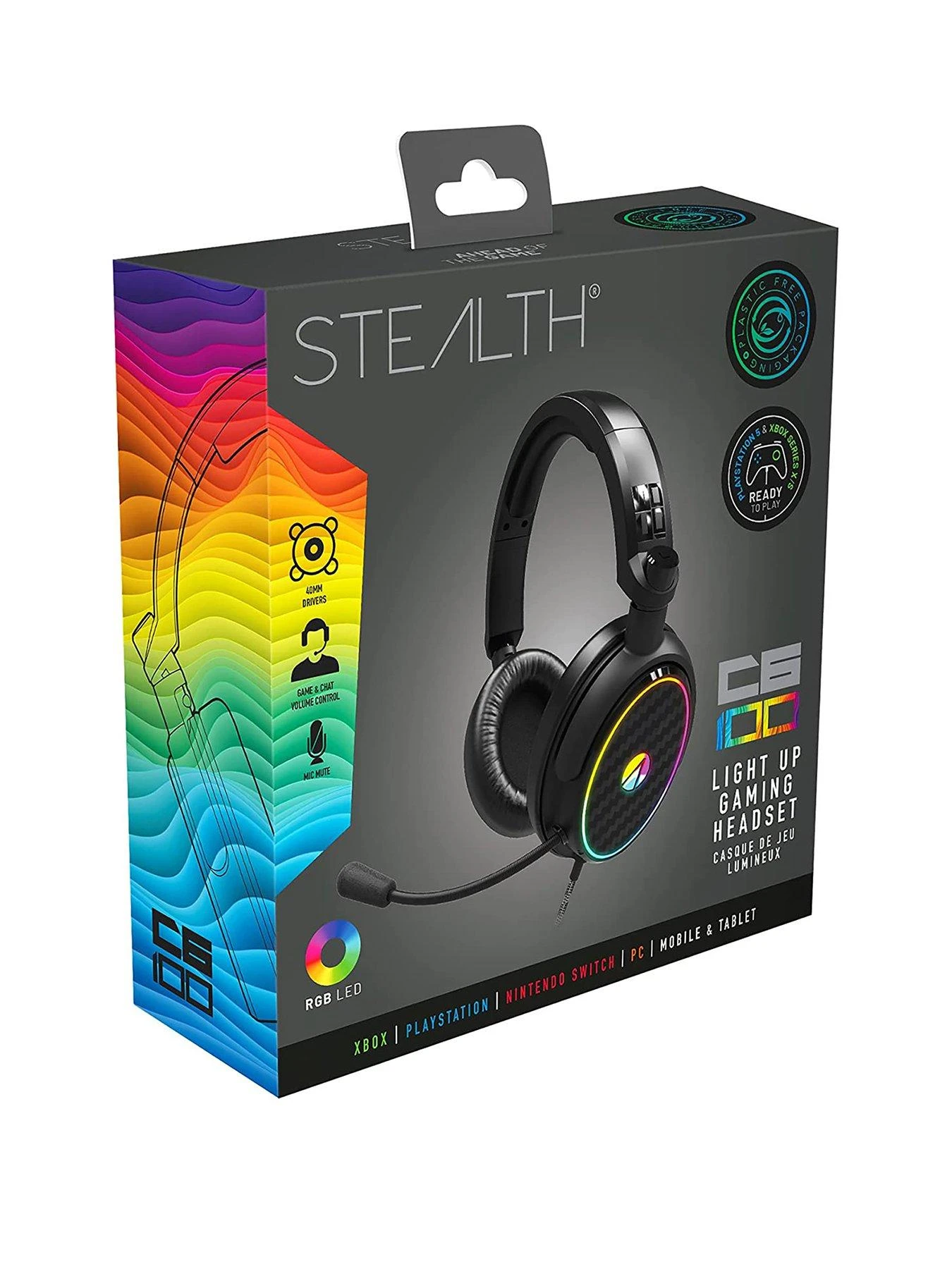 Suitable for all gaming platforms, the Stealth C6-100 Light Up Gaming Headset is sure to enhance your gaming experience. Bright RGB lighting moves around the ear cups and logo in fabulous variety of colour combinations for an awesome effect!
