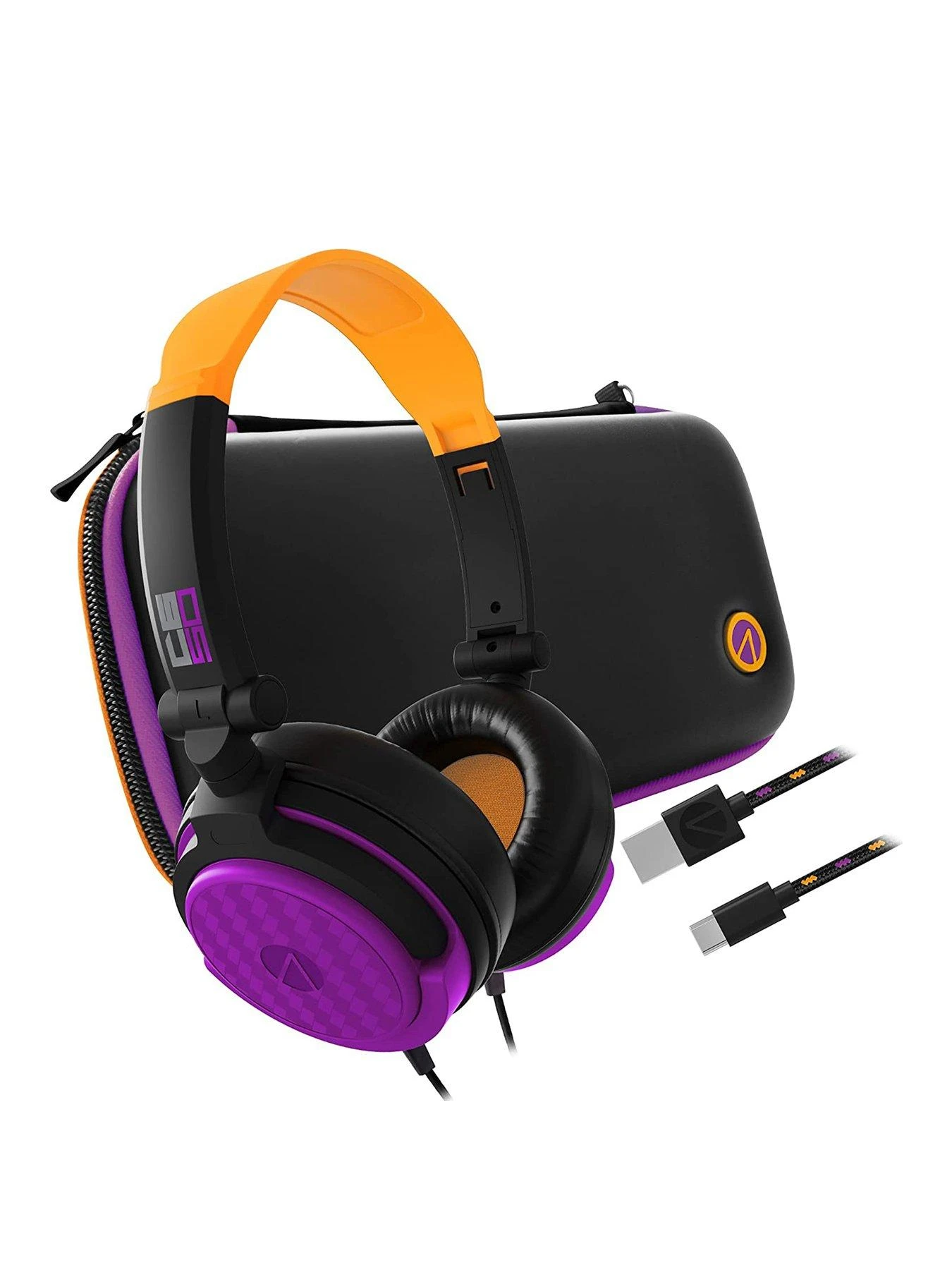 Take your Nintendo Switch, Switch Lite or Switch OLED with you anywhere. The Switch Starter Travel Kit comes with matching Gaming Headset, 2m durable Braided Cable and a hard-shell, protective travel case, all featuring a stylish neon orange and purple finish.