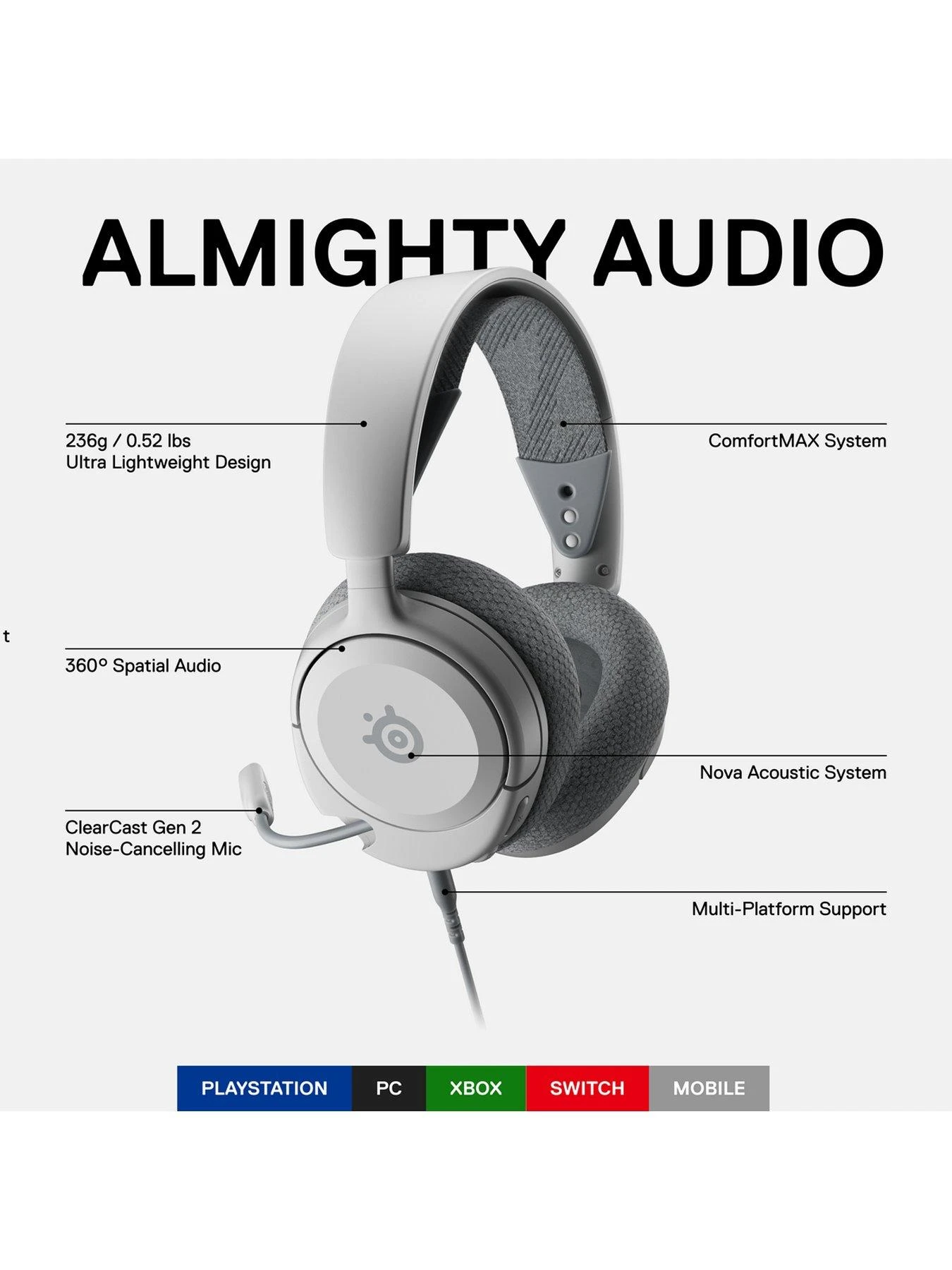 Almighty Audio has never been more accessible, as the Arctis Nova 1P combines hardware and software to bring superior sound quality with High Fidelity Drivers, immersive 360???? Spatial Audio, and a 10-band Parametric EQ for tons of customization. The ComfortMax system allows 4-points of adjustability, easily finding a perfect fit on the lightweight headset, featuring AirWeave Memory cushions. The broadcast-quality noise-cancelling mic reduces background sounds, keeping your in-game communication clear while you stay comfortable even during long-gaming sessions. The Arctis Nova 1P features a 3.5mm jack that works with virtually any platform, including PlayStation, PC, Xbox, Switch, and your mobile device. Easily adjust volume and mute your voice with headset controls.