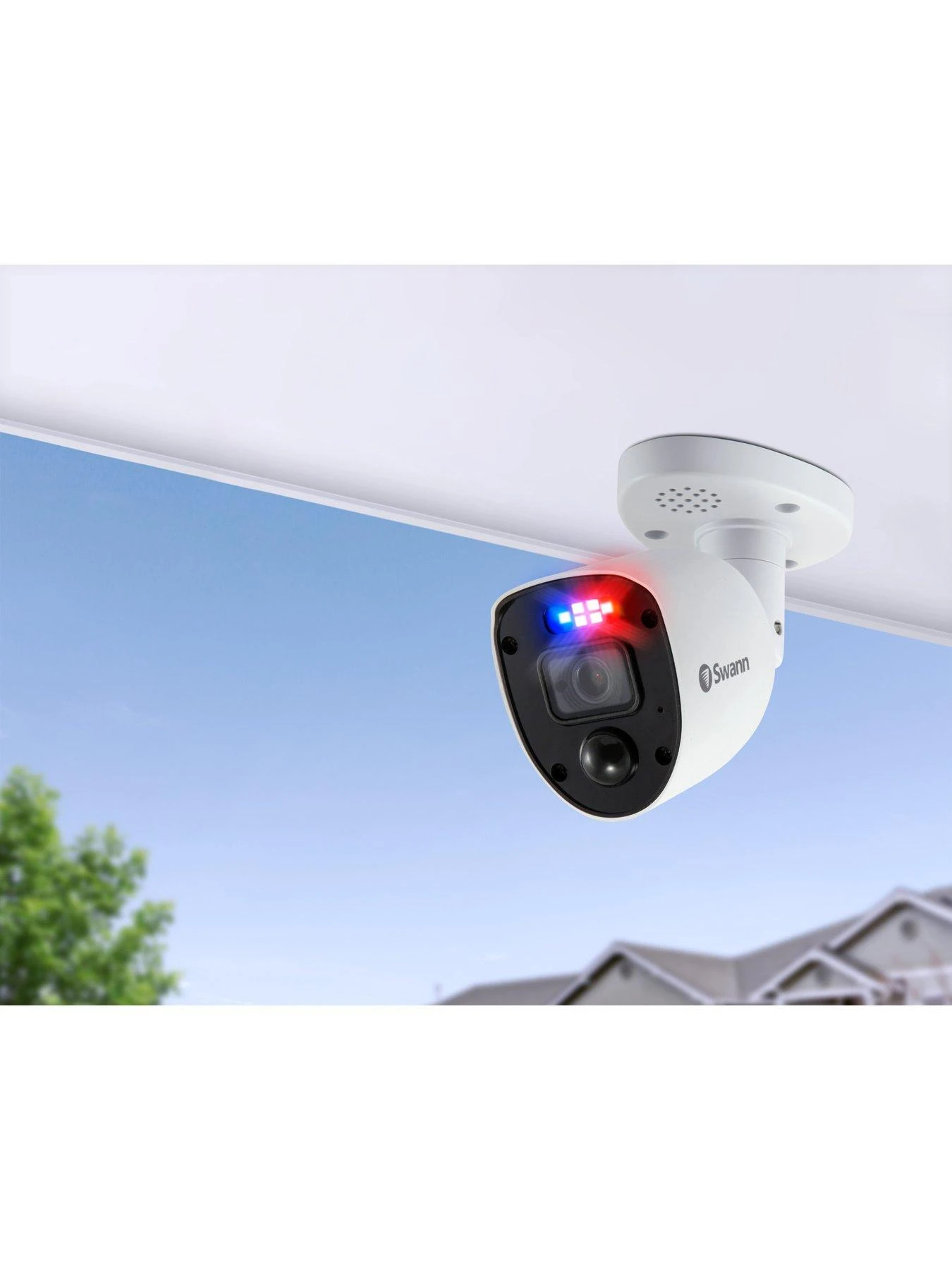 The Swann Enforcer has crime-fighting features other security systems dream about. Heat and motion-based activity triggers red and blue police-style flashing lights, bright spotlights and loud sirens to intimidate intruders and prevent crime from happening. Activity can trigger push notifications to let you know what’s happening and recording to ensure you have video evidence when you need it.