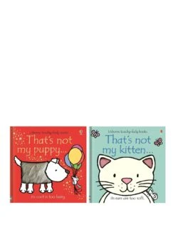 2 Book Set – That’s Not My Puppy – A sparkly special edition of the very first That’s not my… book to celebrate 20 years of That’s not my… books! Babies and toddlers will love touching the textured patches as they meet puppies with fluffy tails, shaggy ears and bumpy paws. The bright pictures and textures to stroke are designed to help develop sensory and language awareness. That’s Not My Kitten – A touchy-feely board book with simple, repetitive text, tactile patches and bold illustrations suitable for babies and toddlers.