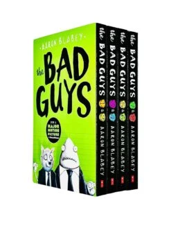 The Bad Guys Episodes 1-8 Collection 4 Books Set by Aaron Blabey: The Bad Guys Episodes 1 & 2: Two Books in one! Episodes 1 & 2 in the hit Bad Guys series – now a hilarious feature film animation. EPISODE ONE: THE BAD GUYS: Mr Wolf has a daring plan for the Bad Guys’ first good mission. The gang are going to break 200 dogs out of the Maximum Security City Dog Pound. EPISODE TWO: MISSION UNPLUCKABLE: The Bad Guys next mission? Rescue 10,000 chickens from a high-tech cage farm. The Bad Guys Episodes 3 & 4: EPISODE THREE: THE FURBALL STRIKES BACK: The Bad Guys are about to have a very BAD day! Mr. Wolf and his bad buddies have messed with the wrong guinea pig – one who is secretly an evil mad scientist. EPISODE FOUR: ATTACK OF THE ZITTENS: It’s a zombie kitten apocalypse! Can the Bad Guys save the world from evil Dr. Marmalade’s meowing monsters. The Bad Guys Episodes 5 & 6: EPISODE FIVE: INTERGALACTIC GAS: The bad news, The world is ending. The good news, The Bad Guys are back to save it! Sure, they might have to borrow a rocket. EPISODE SIX: ALIEN VS BAD GUYS: The Bad Guys are vanishing! A creature with TONS of teeth and WAY too many butts is stealing them, one by one. The Bad Guys Episodes 7 & 8: EPISODE SEVEN: DO-YOU-THINK-HE-SAURUS?! The Bad Guys have flown through outer space, made it back to Earth, and managed to land in exactly the right place … but exactly the wrong TIME.EPISODE EIGHT: SUPERBAD: The Bad Guys have strangely acquired SUPERPOWERS! But their powers might be, well, defective. They can only do things like blow their own pants off in public.