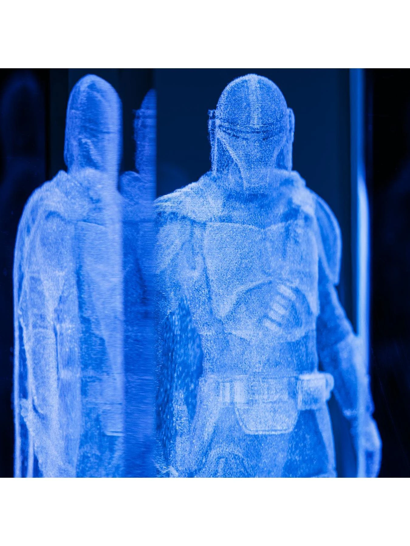 - 3D laser etched crystal model of The Mandalorian and Grogu