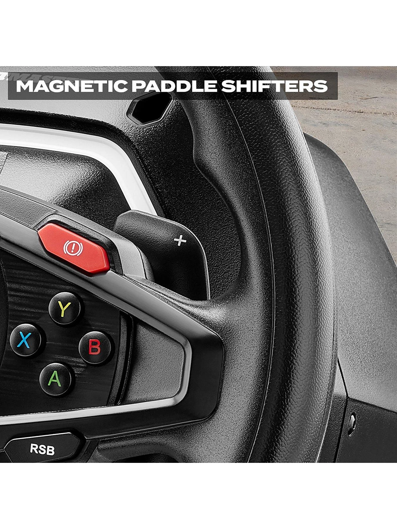 Your first feel of racing with the Thrustmaster T128 racing wheel for Xbox and PC, Optimized Force Feedback system with a lightweight wheel rim, to experience your first racing thrills. Modern, versatile wheel rim design, featuring engine speed LEDs. Precise T-MP magnetic paddle shifters for clear activation feel. Frictionless T2PM magnetic pedal set for enhanced precision and no mechanical wear