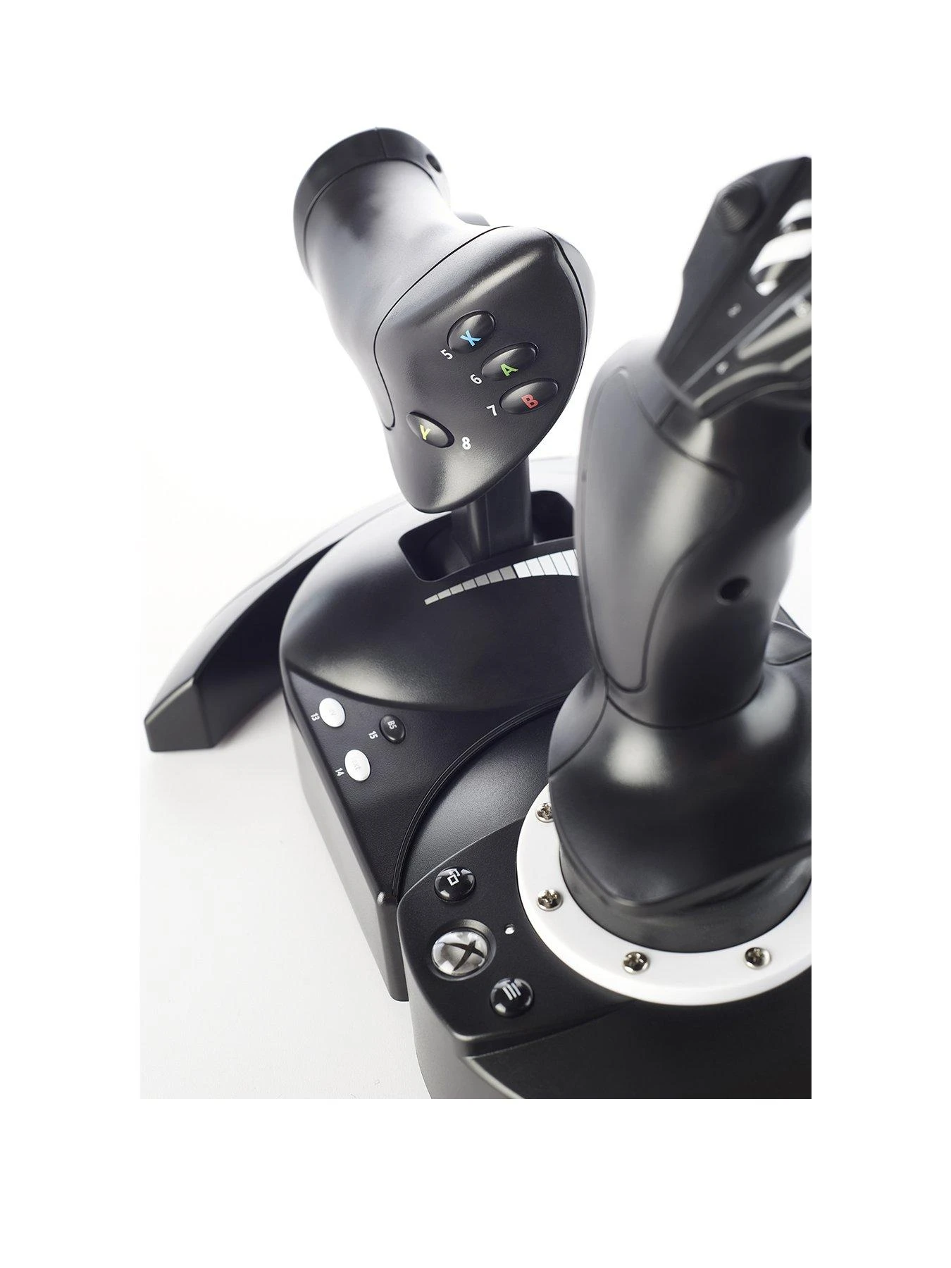 T.Flight Hotas One, an officially-licensed joystick for Xbox One and Windows, provides a high level of realism: the stick includes five axes, fourteen action buttons, a rapid-fire trigger and a multidirectional hat switch (navigation/panoramic view), all of which are easily accessible. The throttle – detachable and full-size for easy maneuverability, even in virtual reality – provides super-responsive power. The dual rudder system can be engaged by rotating the handle (with an integrated locking system) or via the progressive tilting lever. The T.Flight Hotas One includes official buttons for the Xbox One console (Guide/View/Menu): access social features, switch between the game and the console, navigate through the console’s menus, etc.