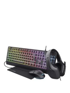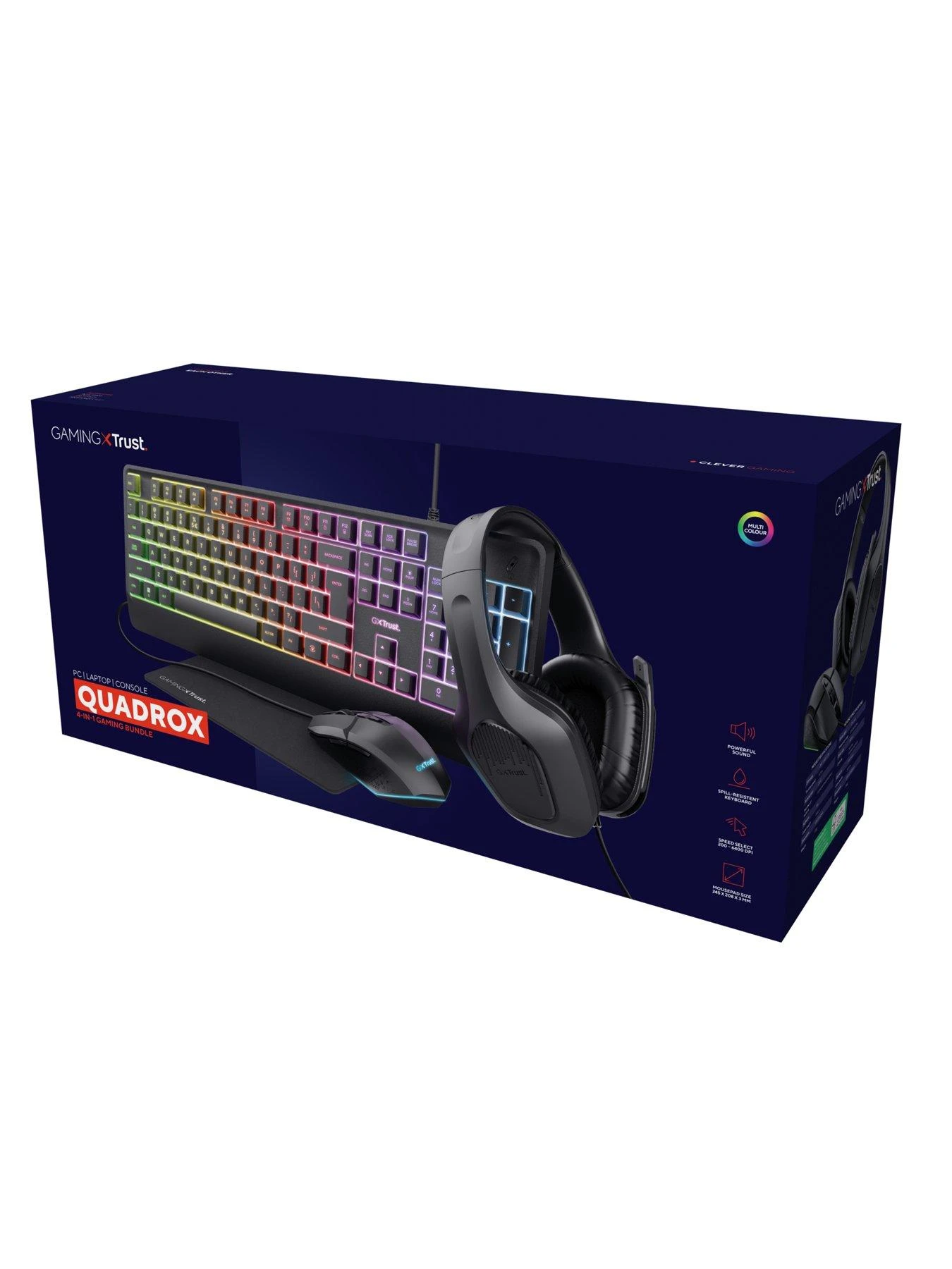 The Trust GXT 792 Quadrox 4-in-1 Gaming Bundle features a keyboard, headset, mouse and pad.