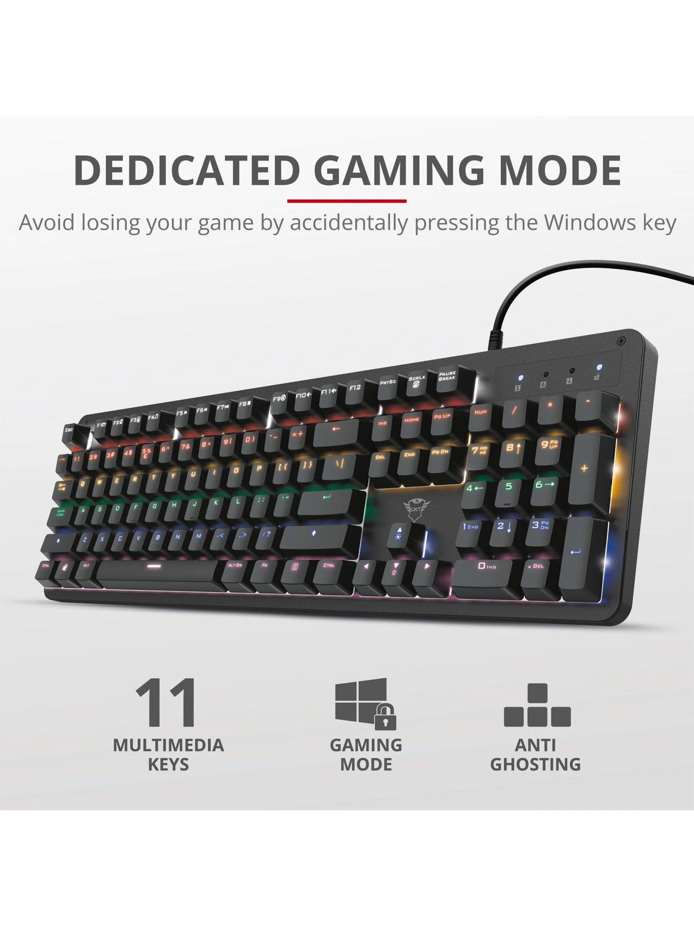 - Anti-ghosting N-key rollover prevents keystrokes from not being registered
