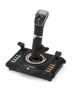 The Turtle Beach VelocityOne Flightstick for Xbox Series X|S, Xbox One & Windows PCs equips you with immersive, accurate controls for air and space flight simulation & combat games on Xbox and PC. Ultra-smooth main stick provides precise control, and two multi-function levers control main engine power and adjustment of control surfaces. A precise nano trim wheel allows for fine tuning of attitude and the OLED Flight Management Display makes for easy adjustments to control profiles. With 27 programmable buttons, a rapid-fire trigger and more, you’re well-armed with a multitude of controls. With two integrated vibration motors you’ll feel response of the engine, and impact of enemy weapon fire for added realism.