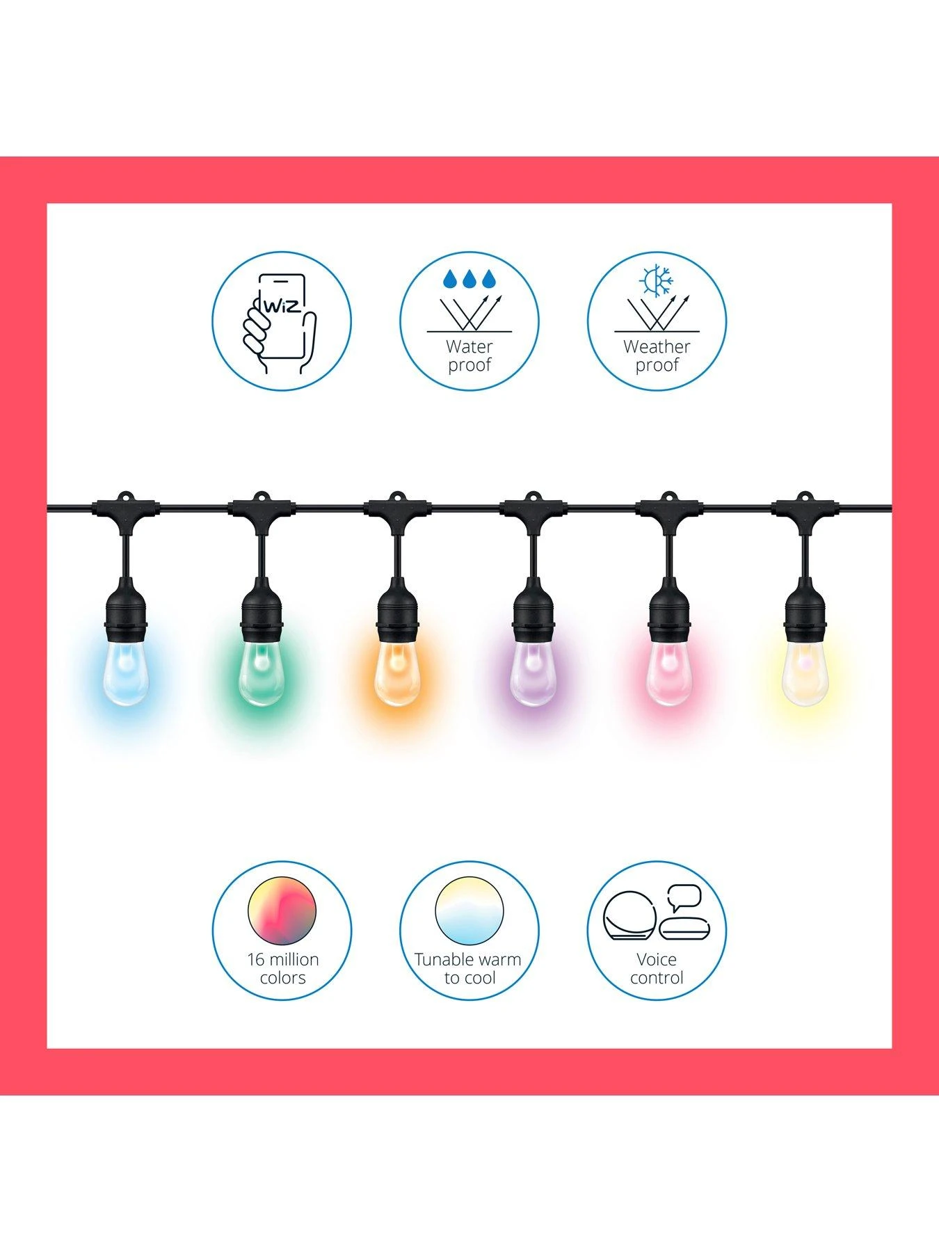 WiZ Smart LED White and Colour Outdoor Festoon Lights – for adjustable light and colour.