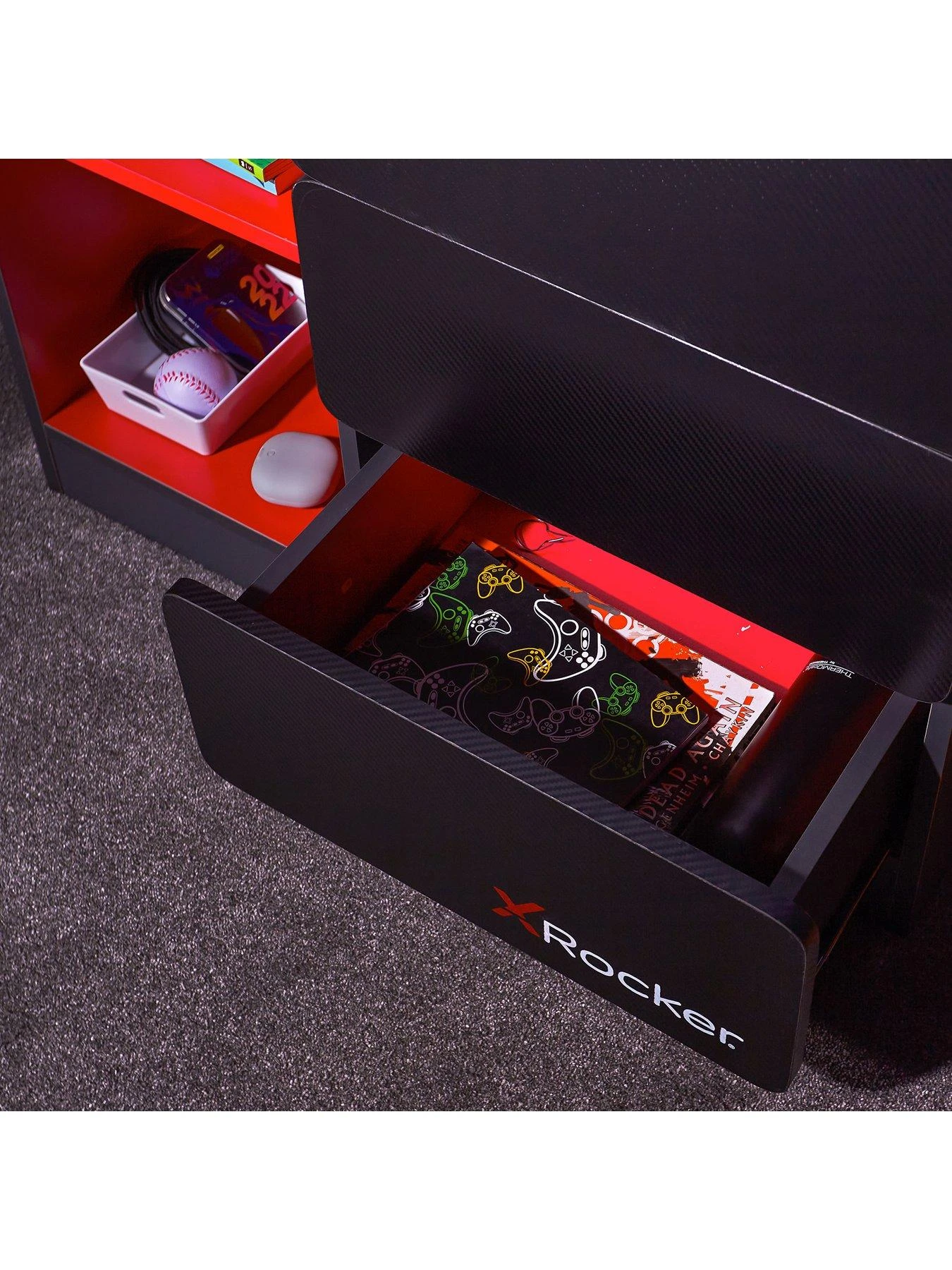 X Rocker Carbon-tek Gaming Storage Sideboard with 3 Drawers, Open Shelves and LED Lights – grey