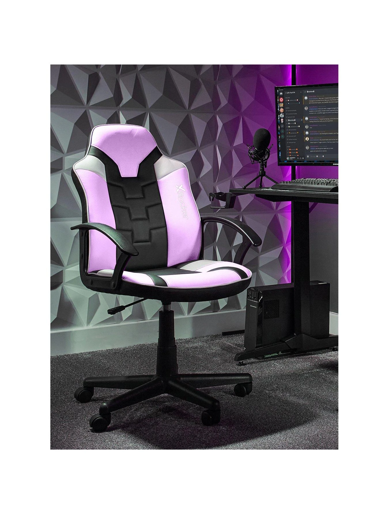 X Rocker Saturn White/Pink/Grey Mid-Back Esport Gaming Chair – compact, comfy and designed to help you focus.