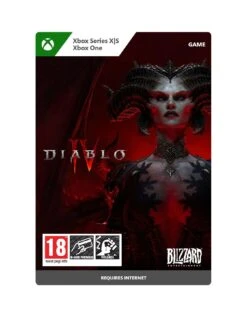 Diablo IV is the ultimate action RPG experience with endless evil to slaughter, countless abilities to master, nightmarish dungeons, and legendary loot. Embark on the campaign solo or with friends, through beautifully dark settings, or explore a shared world where players can meet in towns to trade, team up to battle world bosses, or descend into PVP zones to test their skills against other players. Includes the Xbox One and Xbox Series X|S versions of the game, the Light-Bearer Mount, Caparison of Faith Mount Armor, and more.