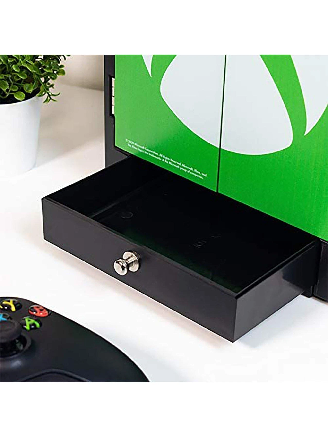 Certify your status as an elite Xbox gamer with this gaming locker. This Xbox accessory has it all as it can hold up to 10 of your favourite Xbox games or movies. It also features a ton of space to store all your gaming essentials, whether that be controllers or cables and other accessory. Secure your headphones in fashion with the headphone mount on the top of the locker.