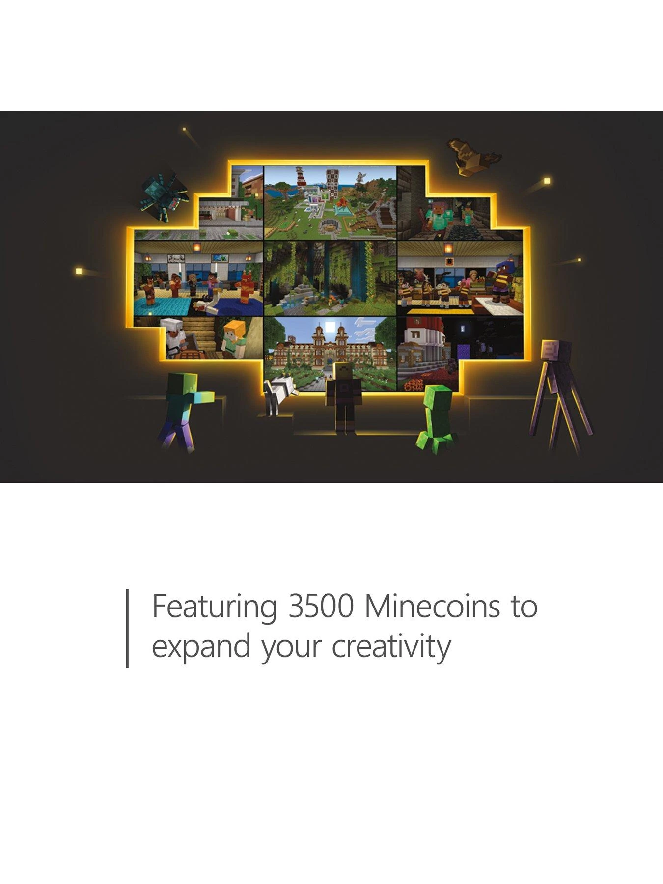 Use the 3500 Minecoins included to get maps, skins, texture packs, and more from the Minecraft Marketplace.