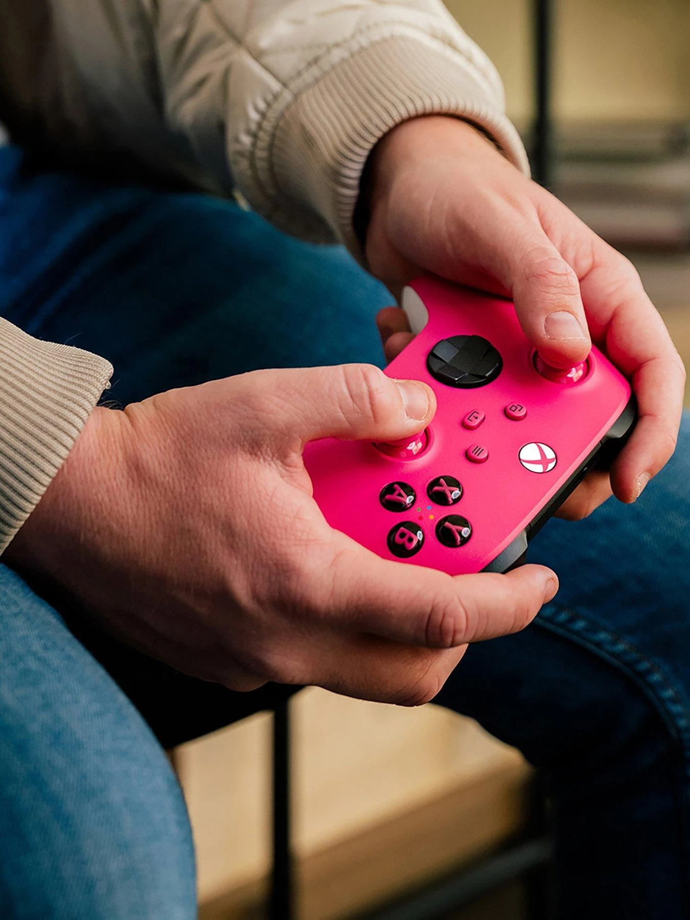 - Modernised design of the Xbox Wireless Controller in Deep Pink, sculpted surface for enhanced comfort during gameplay with battery life up to 40 hrs